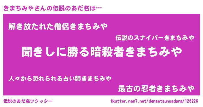 | 男性向けラノベタイトル風あだ名 | 『きまちみやという概念が存在しない退屈な世界 』 |