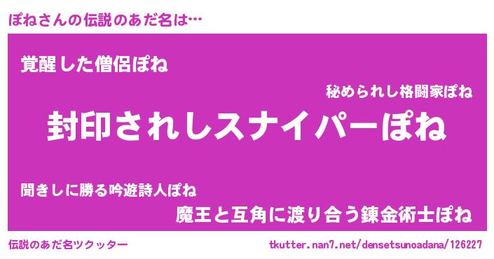 | 意味不明あだ名 | 『住所不定無職ぽね(81歳)』『ペロリンぽね』 |