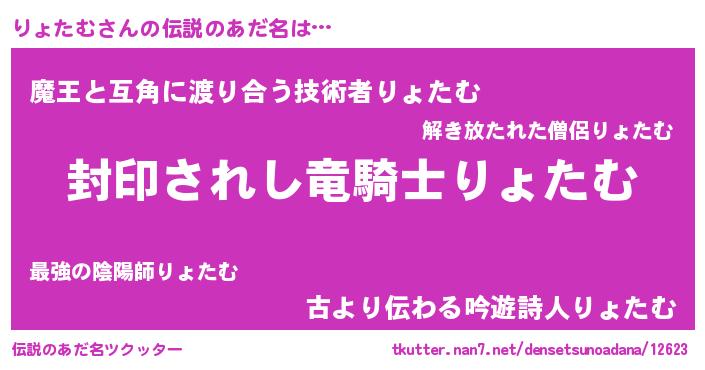 | ヒーロー風カッコイイあだ名 | 『仮面リョダー』『スーパーリョタム』 |