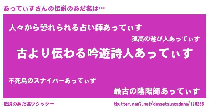 | 意味不明あだ名 | 『永久保存あってぃす』『自称あってぃす』 |