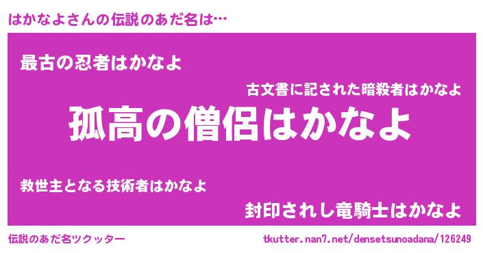 | 意味不明あだ名 | 『とにかく怪しいはかなよ』 |