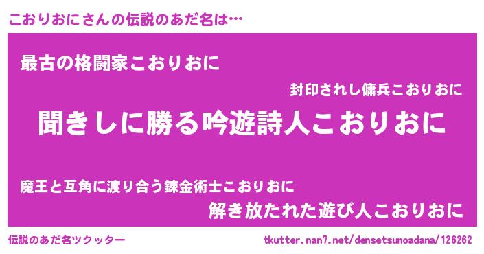 | 意味不明あだ名 | 『住所不定無職こおりおに(10歳)』 |