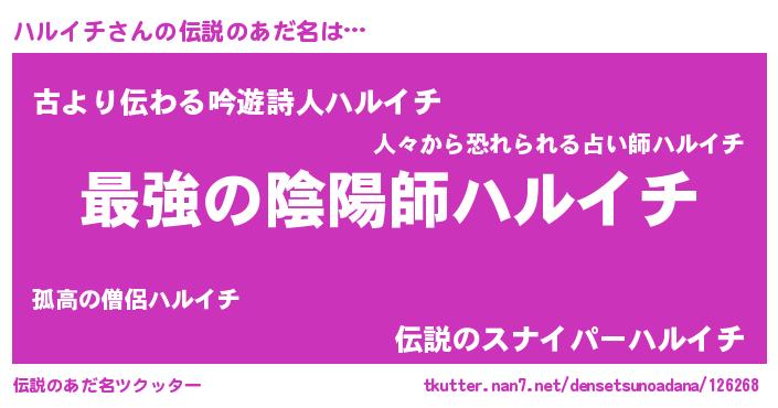 | 意味不明あだ名 | 『ハルイチフォーエバー』 |