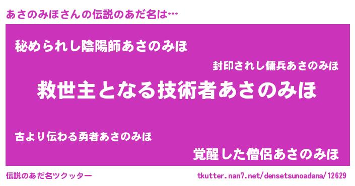 | 意味不明あだ名 | 『住所不定無職あさのみほ(9歳)』 |