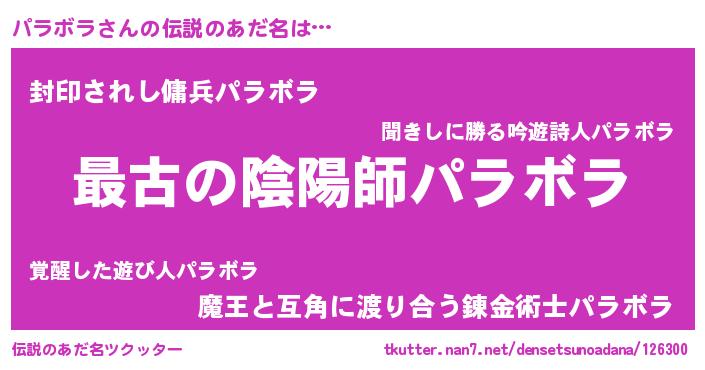 | ヒーロー風カッコイイあだ名 | 『ウルトラパラボラマン』『ネオパラボラ』 |