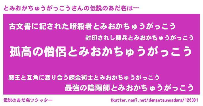 | ヘコむあだ名 | 『とみ太郎』『とみおかちゅうがっこう(笑)』 |