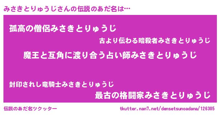 | ヒーロー風カッコイイあだ名 | 『慈愛の使者みさきとりゅうじ』 |
