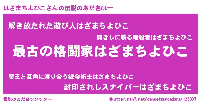 | 恥ずかしいあだ名 | 『ハザマチヨヒコデラックス』『はざちん』 |