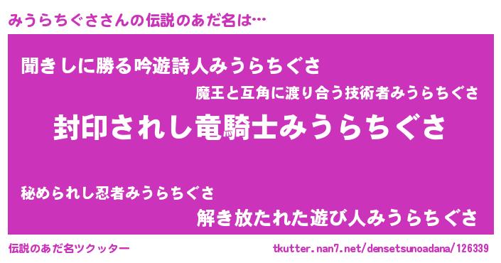 | ヒーロー風カッコイイあだ名 | 『スーパーミウラチグサ』『仮面ミウダー』 |