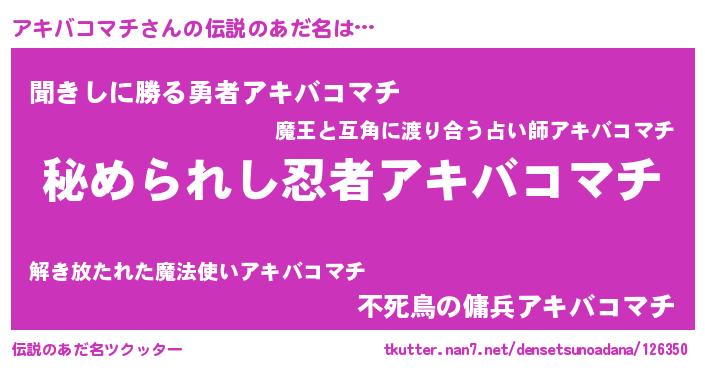 | 意味不明あだ名 | 『自称アキバコマチ』 |