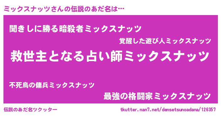 | ヒーロー風カッコイイあだ名 | 『最強戦士ミックスナッツ』 |