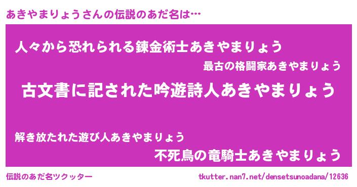 | 意味不明あだ名 | 『永久保存あきやまりょう』 |