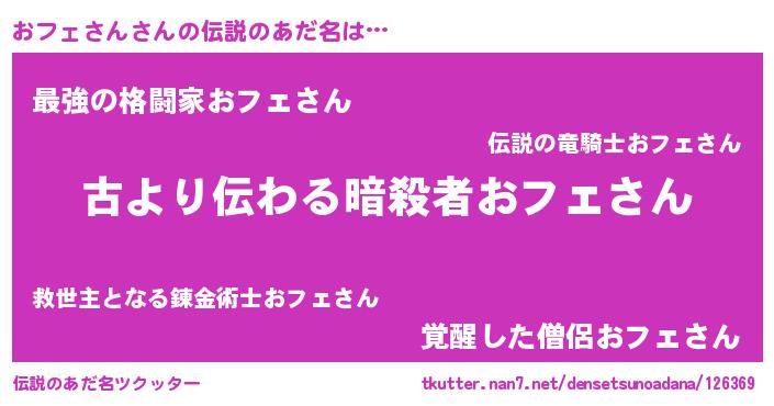 | ヒーロー風カッコイイあだ名 | 『ネオオフェサン』『暗黒騎士オフ』 |