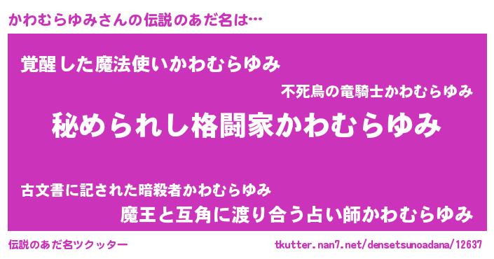 | ヒーロー風カッコイイあだ名 | 『ウルトラかわむらゆみマン』 |
