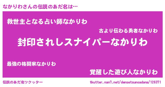 | 胡散臭い通販商品みたいなあだ名 | 『億万長者になれる霊験あらたかなお札…その名も「なかりわ」』 |
