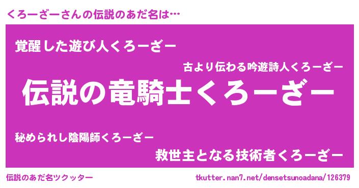 | 男性向けラノベタイトル風あだ名 | 『くろーざーの憂鬱』 |