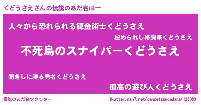 | 男性向けラノベタイトル風あだ名 | 『クドウサエアートオンライン』 |