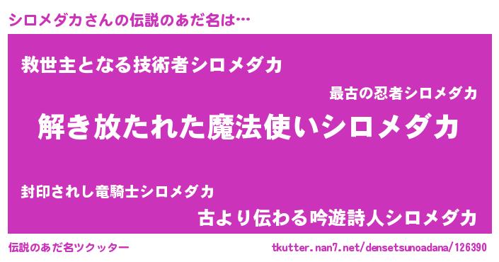 | ヒーロー風カッコイイあだ名 | 『幻影騎士シロ』『友情の使者シロメダカ』 |