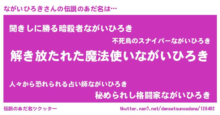 | 意味不明あだ名 | 『住所不定無職ながいひろき(3歳)』 |