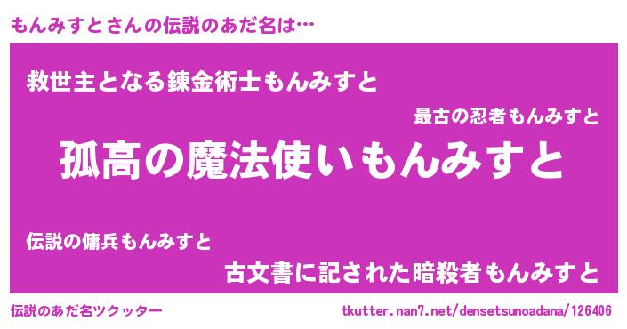| ヒーロー風カッコイイあだ名 | 『魔戒騎士モン』『慈愛の使者もんみすと』 |