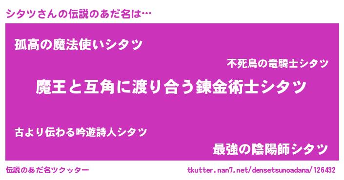 | ヒーロー風カッコイイあだ名 | 『慈愛の使者シタツ』『暗黒騎士シタ』 |