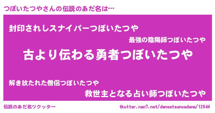 | 胡散臭い通販商品みたいなあだ名 | 『来世でも幸せになれる水素水…その名も「つぼいたつや」』 |
