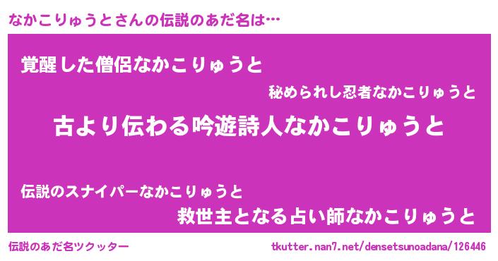 | ヒーロー風カッコイイあだ名 | 『最強戦士ナカコリュウト』 |