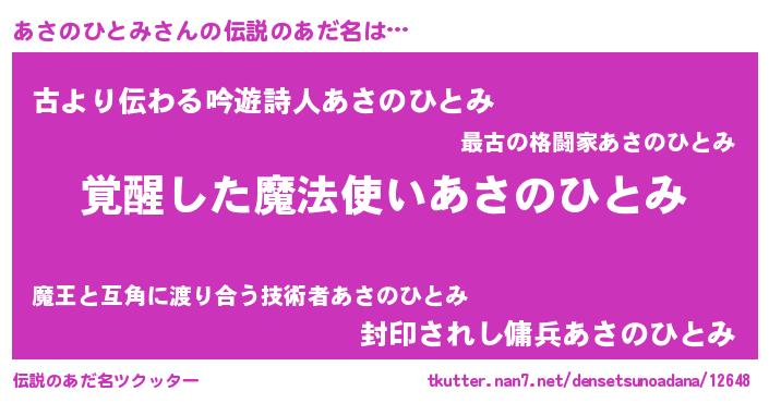 | 男性向けラノベタイトル風あだ名 | 『あさのひとみの嫁は女の子じゃないと思った?』 |