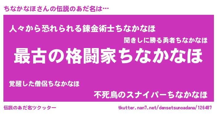 | ファンタジー風あだ名 | 『エターナルチナカナホー』『チナフェル』 |