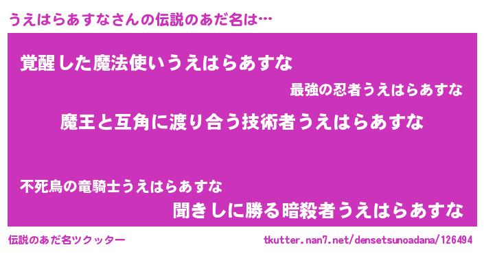 | ヒーロー風カッコイイあだ名 | 『友情の使者うえはらあすな』 |