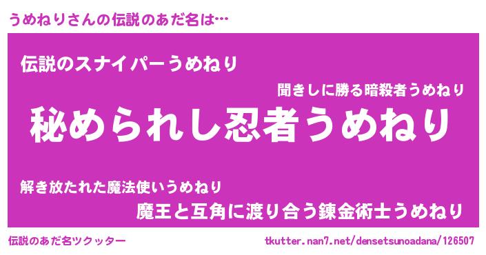 | ファンタジー風あだ名 | 『エターナルウメネリー』『ウメフェル』 |