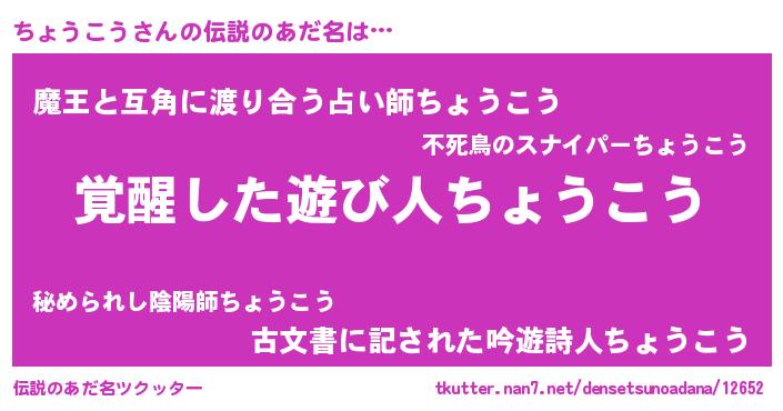 | 男性向けラノベタイトル風あだ名 | 『ちょうこうの嫁は女の子じゃないと思った?』 |