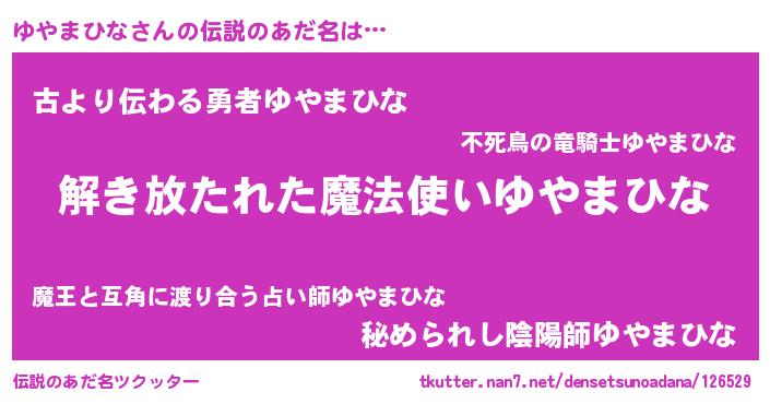 | 胡散臭い通販商品みたいなあだ名 | 『伝統あるサプリメント…その名も「ゆやまひな」』 |
