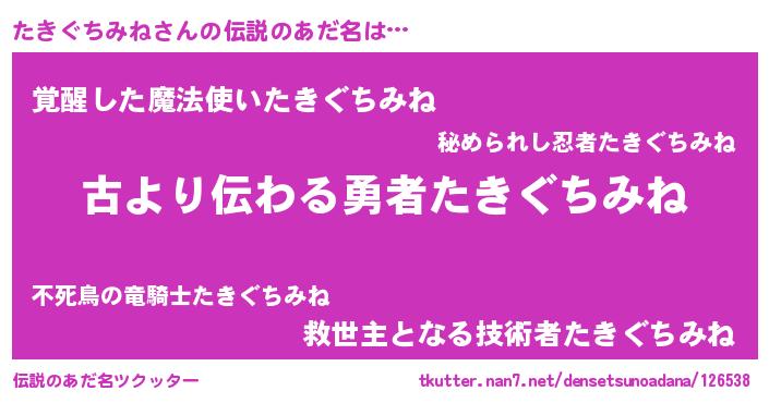 | 意味不明あだ名 | 『永久保存たきぐちみね』 |