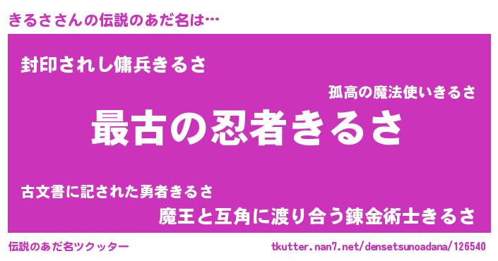 | 意味不明あだ名 | 『たけのこ科きるさ属』『自称きるさ』 |