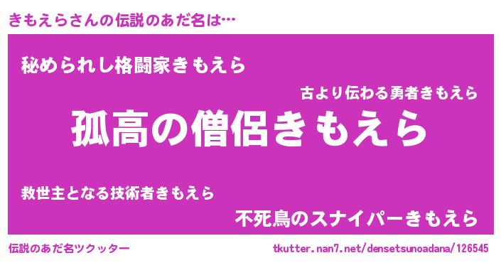 | ヒーロー風カッコイイあだ名 | 『黄金騎士キモ』『究極戦士キモエラ』 |