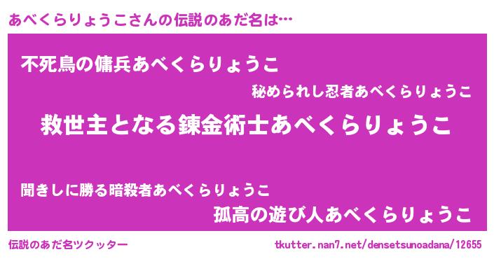 | ヒーロー風カッコイイあだ名 | 『慈愛の使者あべくらりょうこ』 |