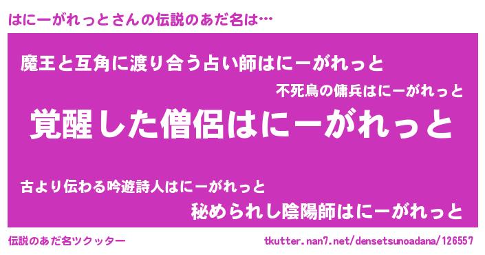 | 意味不明あだ名 | 『とにかく怪しいはにーがれっと』 |