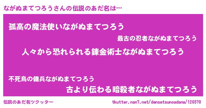 | 男性向けラノベタイトル風あだ名 | 『ナガヌマテツロウスレイヤー』 |