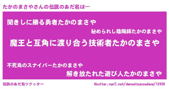 | ヒーロー風カッコイイあだ名 | 『友情の使者たかのまさや』 |