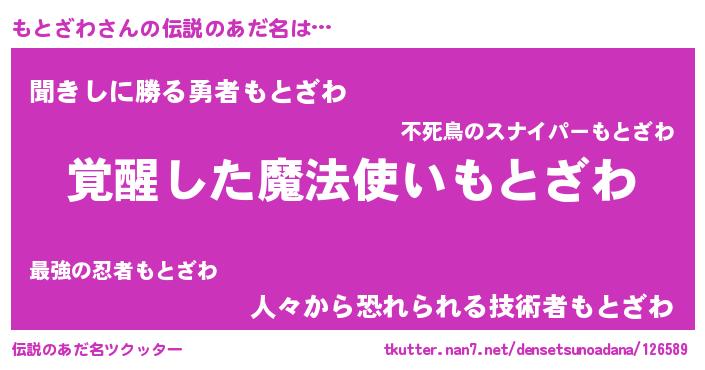 | ヒーロー風カッコイイあだ名 | 『天弓騎士モト』『ネオモトザワ』 |
