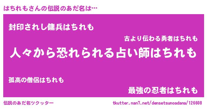 | 女子向けラノベタイトル風あだ名 | 『シンデレラはちれも家の靴箱館』 |