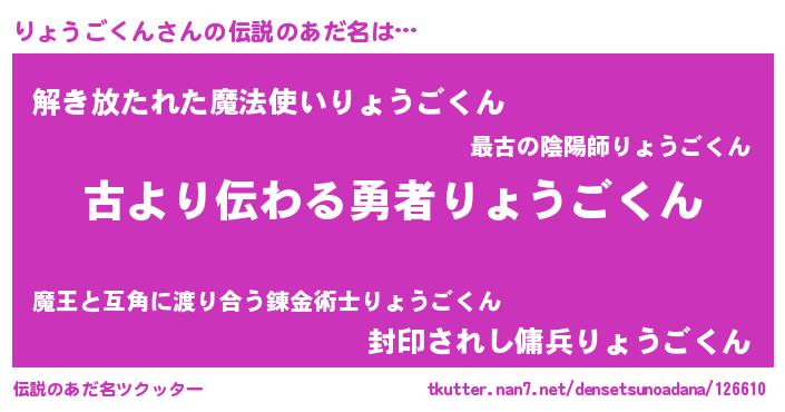| 意味不明あだ名 | 『永久保存りょうごくん』 |