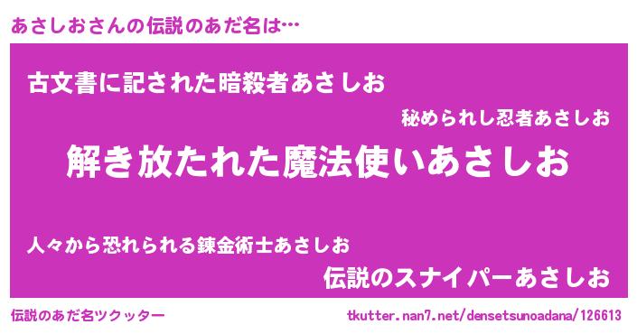 | ヒーロー風カッコイイあだ名 | 『銀牙騎士アサ』『ウルトラ戦士アサシオ』 |