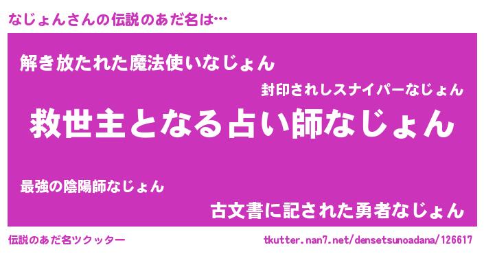 | 欧米人風あだ名 | 『ダニエルなじょん』『ウサインなじょん』 |