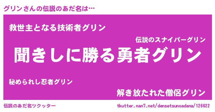 | ヘコむあだ名 | 『グリン(遠い目)』『グリを』『牛乳』 |