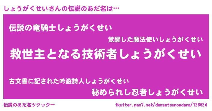 | ヒーロー風カッコイイあだ名 | 『究極戦士ショウガクセイ』 |