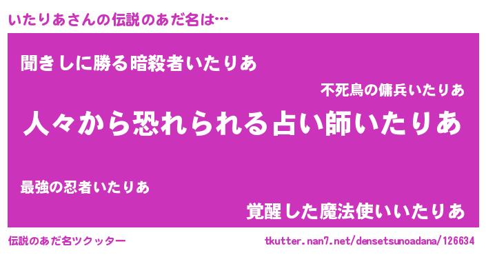 | ヒーロー風カッコイイあだ名 | 『正義の使者いたりあ』『ネオイタリア』 |