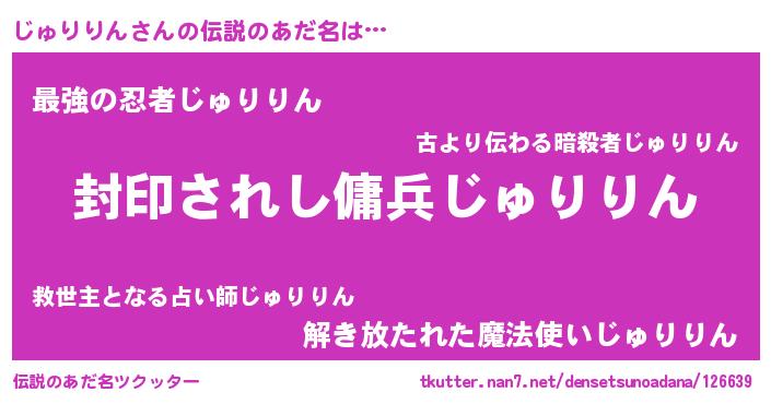 | ヒーロー風カッコイイあだ名 | 『スーパージュリリン』『幻影騎士ジュ』 |
