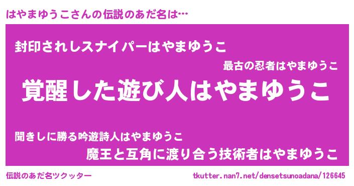 | 意味不明あだ名 | 『自称はやまゆうこ』 |